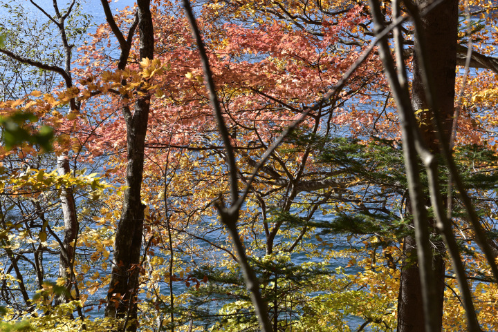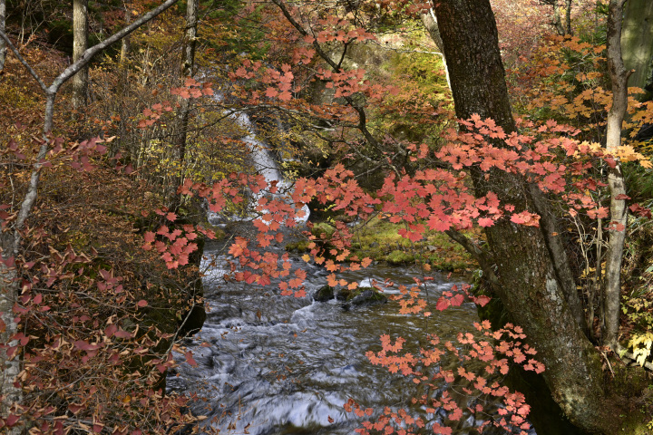 栃木県日光市にある湯ノ滝、中禅寺湖周辺の紅葉の様子です。