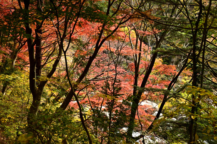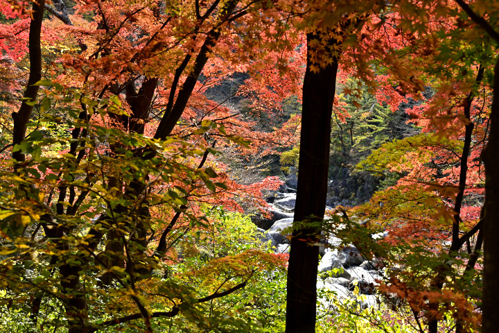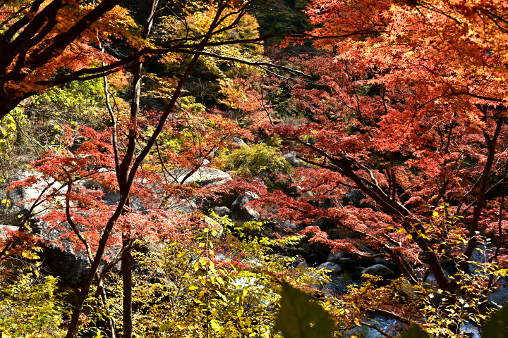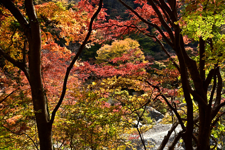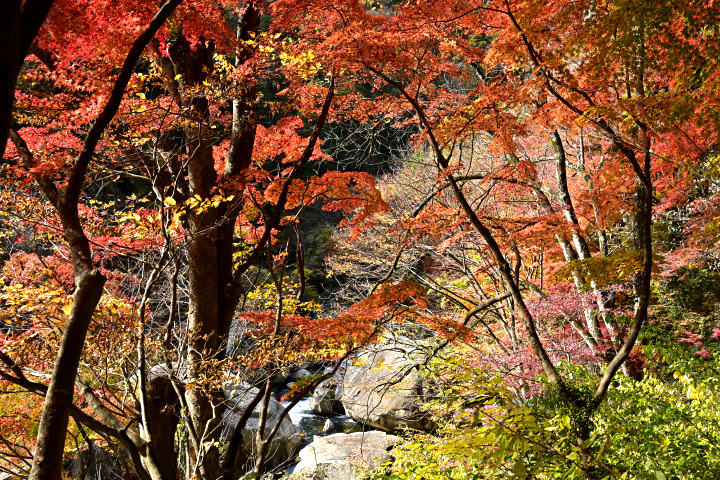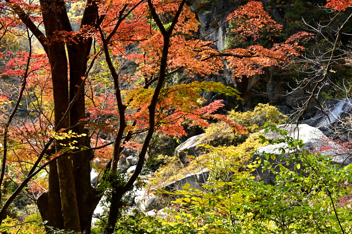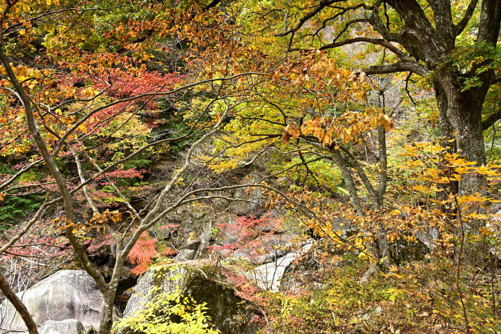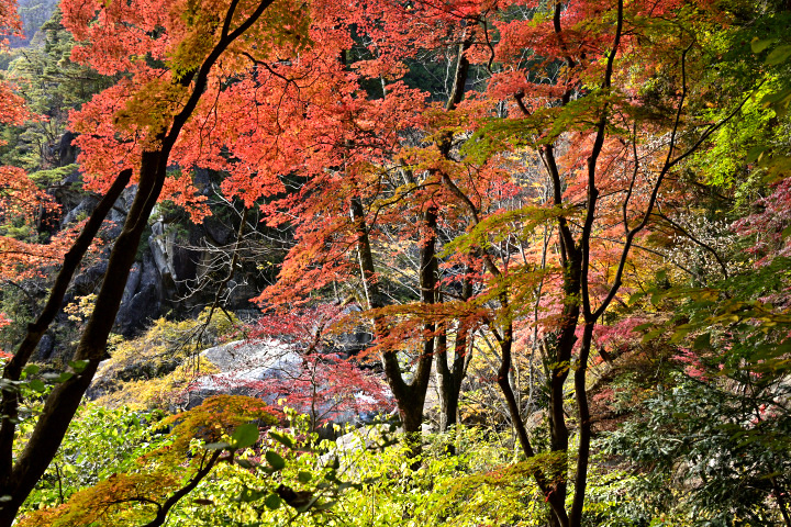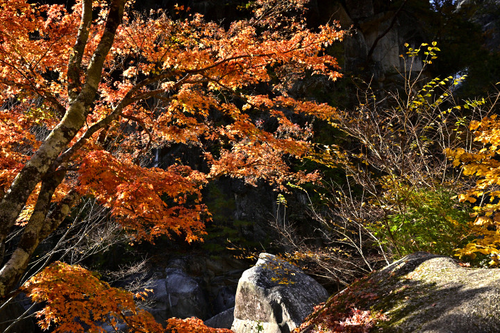 山梨県甲府市にある昇仙峡の紅葉の様子です。