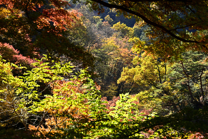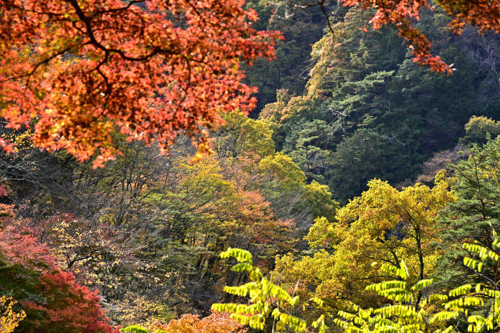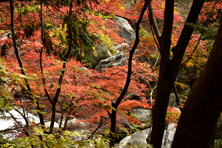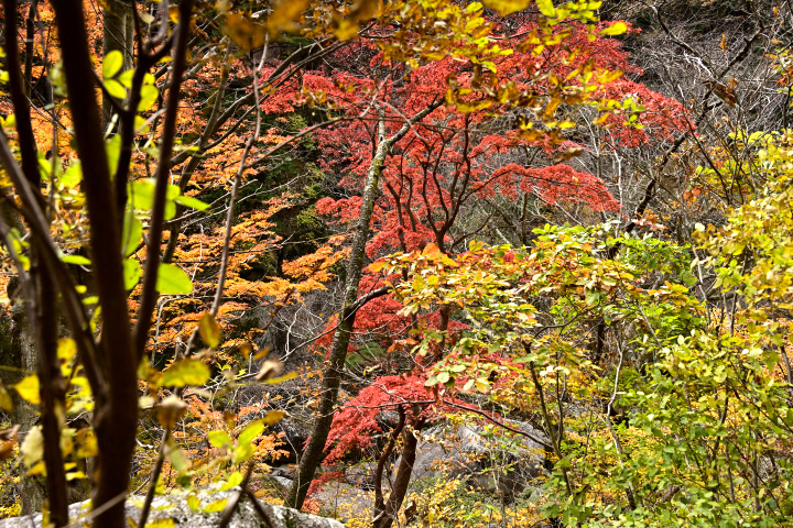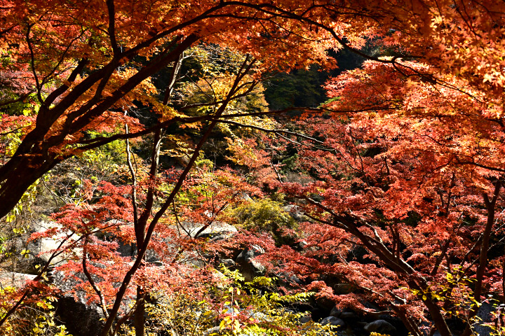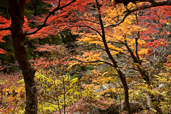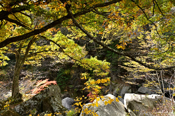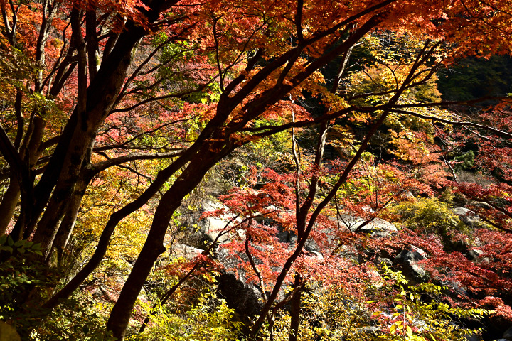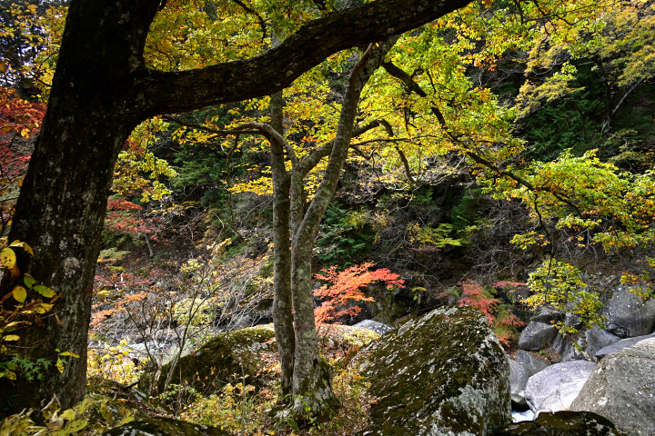 山梨県甲府市にある昇仙峡の紅葉の様子です。